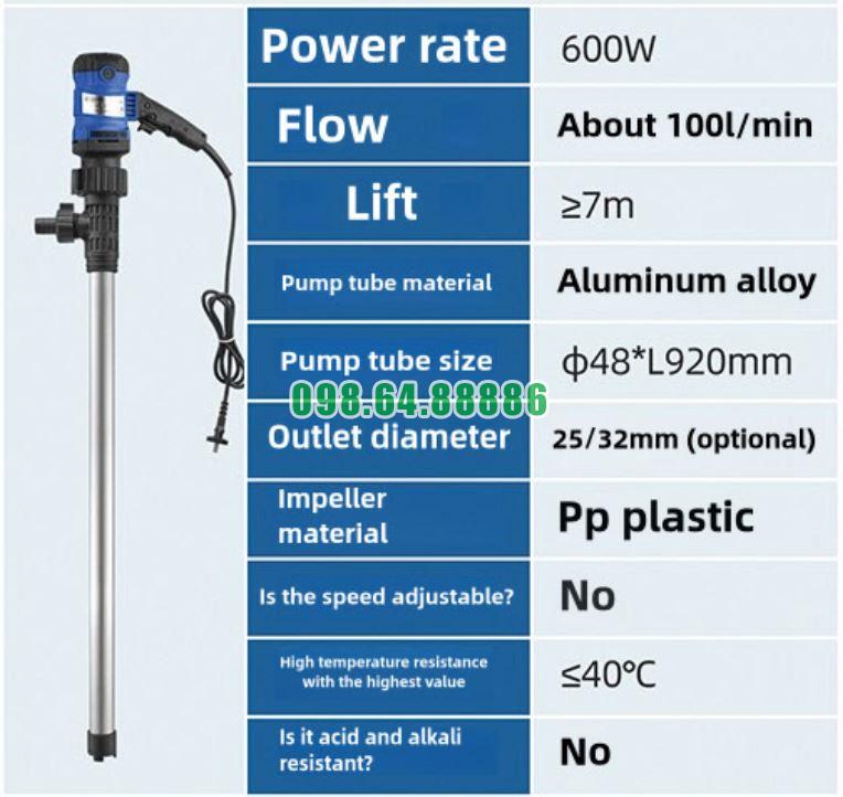 Máy bơm thùng phuy điện model JDT-L92-600W được phát triển cho môi trường làm việc có dầu, dung môi và nhiều loại hóa chất công nghiệp. Vì đặc thù phải tiếp xúc trực tiếp với chất lỏng trong thùng phuy, thiết kế chống ăn mòn là yếu tố cốt lõi giúp máy vận hành an toàn, bền bỉ và giữ hiệu suất ổn định lâu dài.