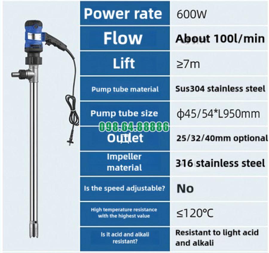 Bơm hóa chất nóng công nghiệp JDT-G120-600W