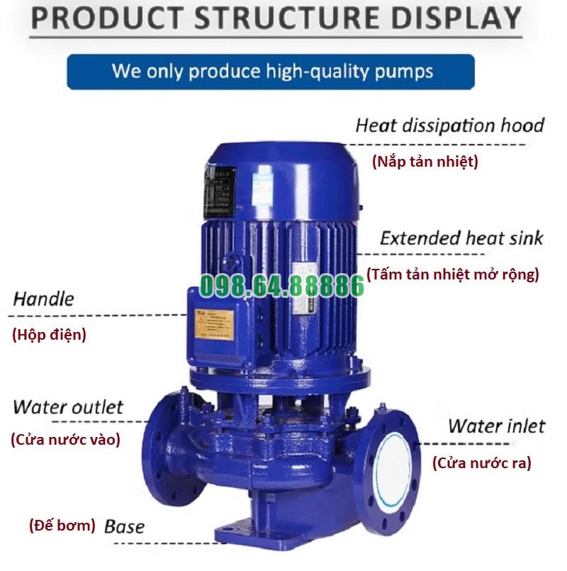 Máy bơm tăng áp inline, bơm trục đứng ISG65-250A, IRG65-250A 11kw, 23.4m3, 70m